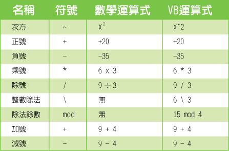 算術運算式是指資料與資料間的算術運算,例如加、減、乘、除
