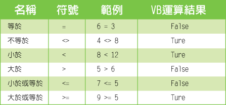 Visual Basic 中的運算式除了算術運算式外(加、減、乘、除...等),還有關係運