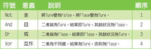 邏輯運算式又稱布林運算式,用以判斷二資料項之間的邏輯關係。
