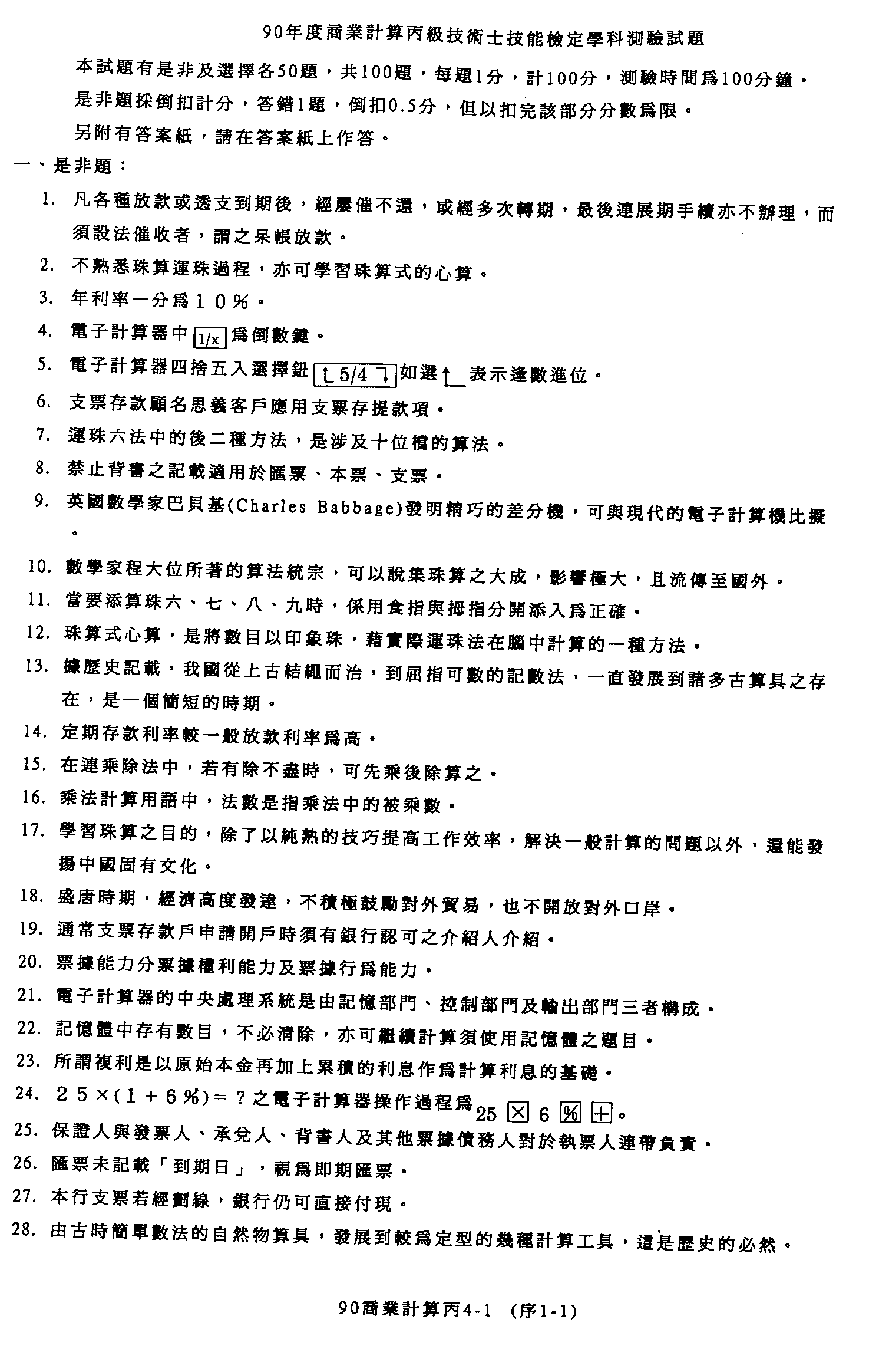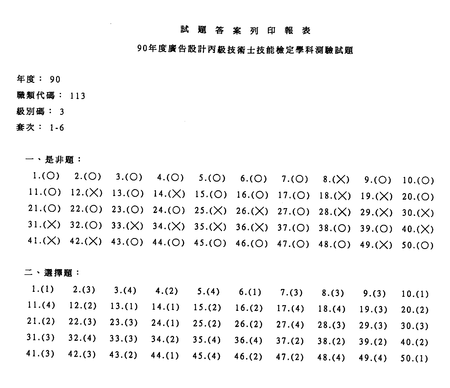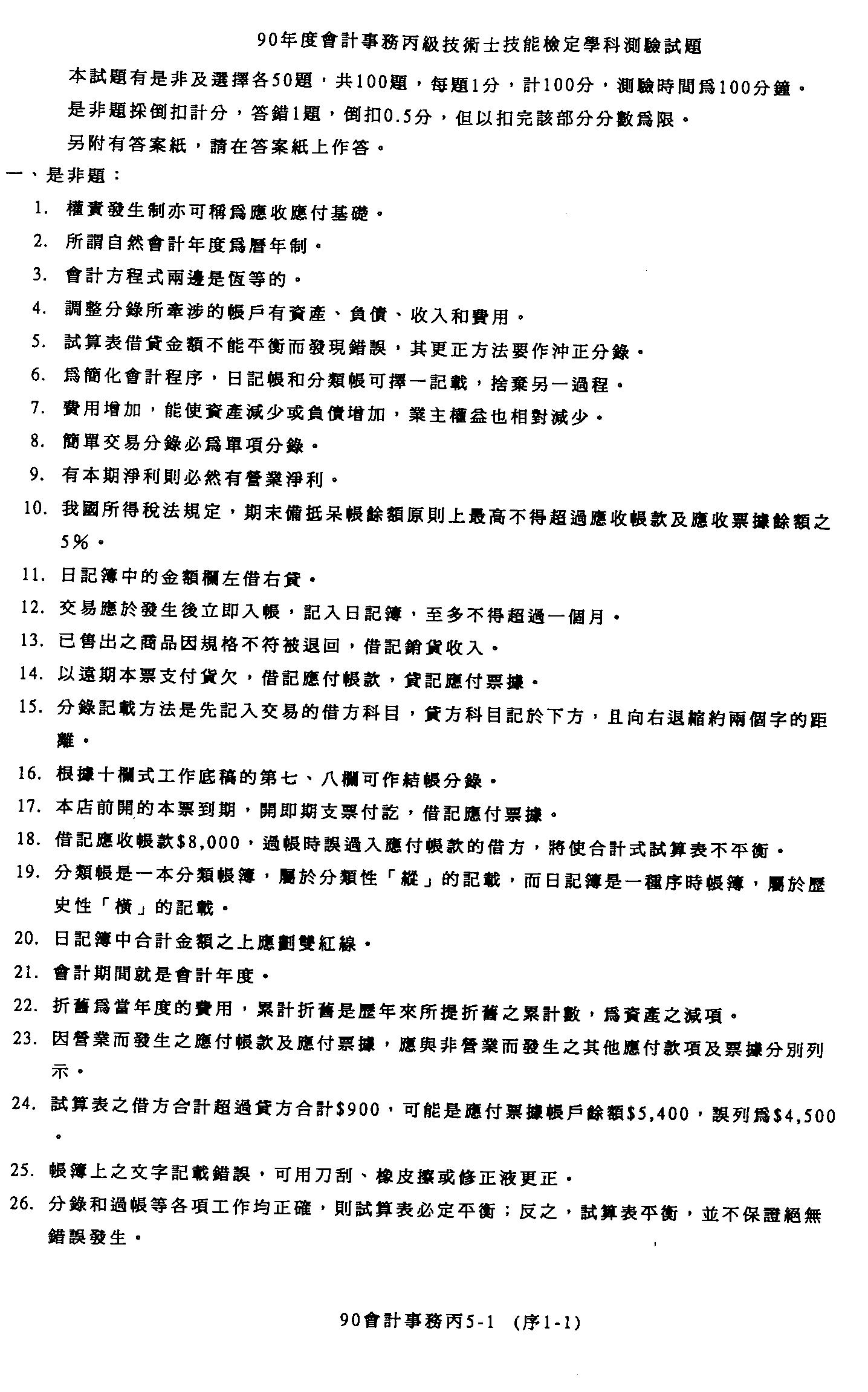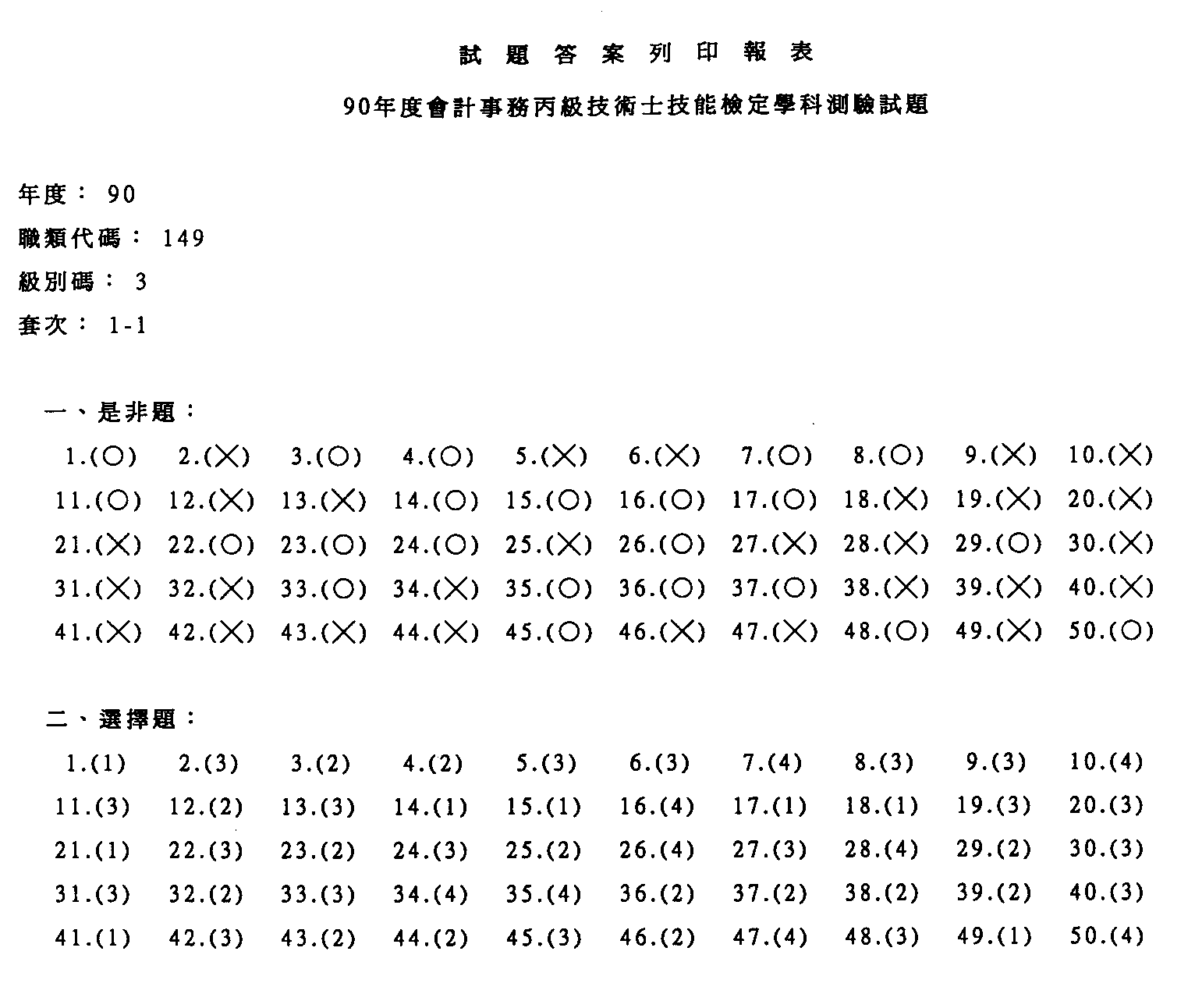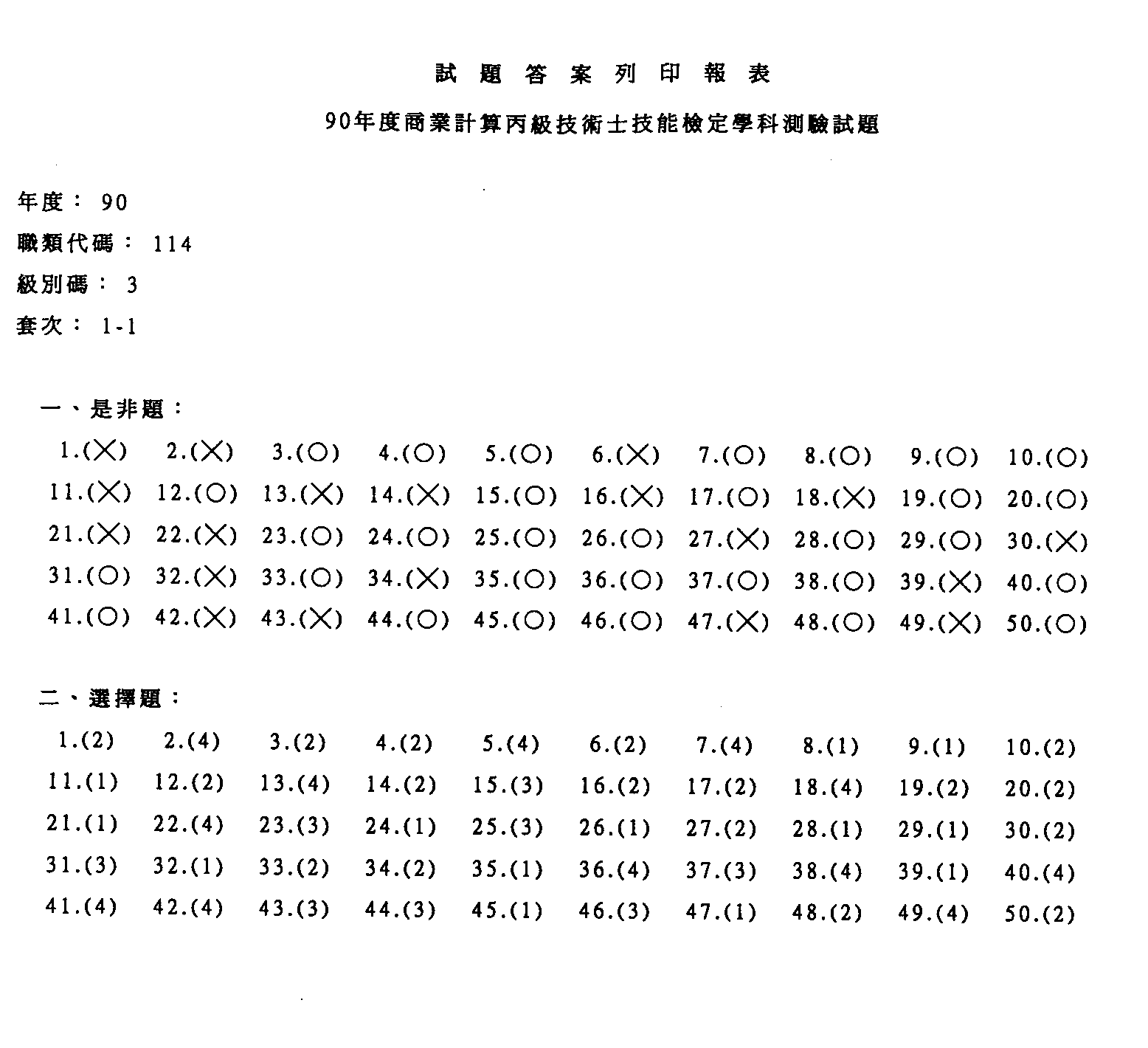 臺灣區九十年度技職學校商業類在校生丙級技術士專案技能檢定