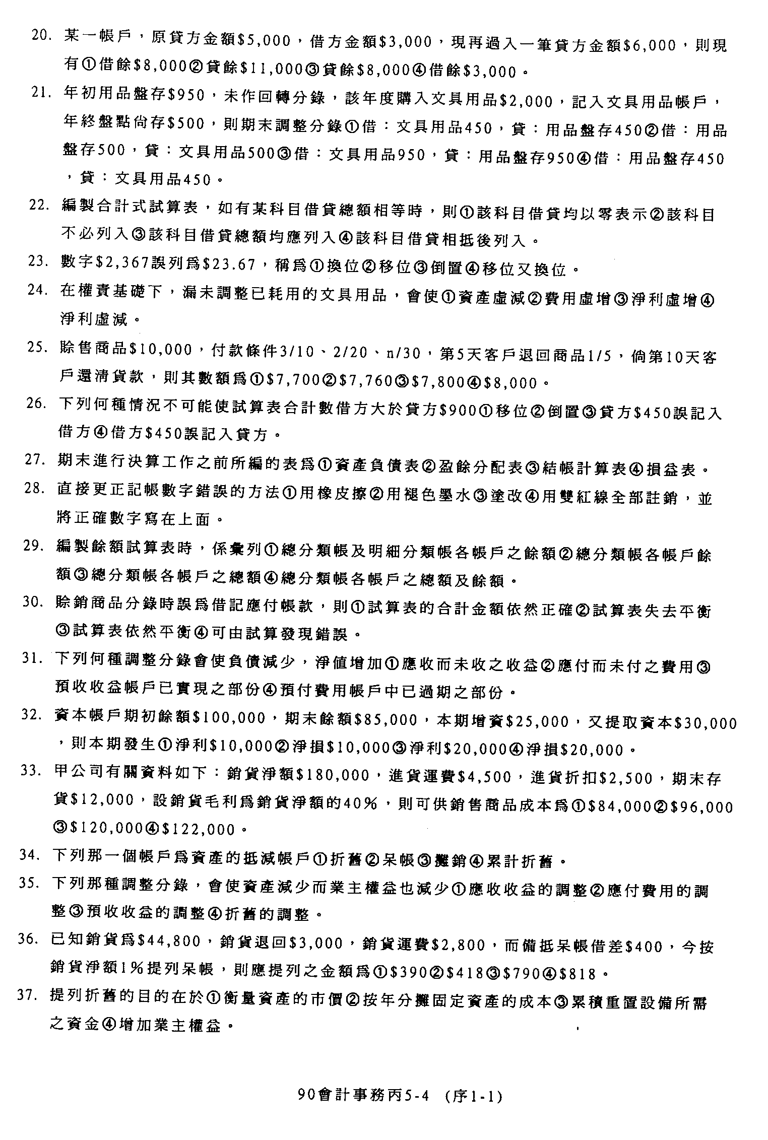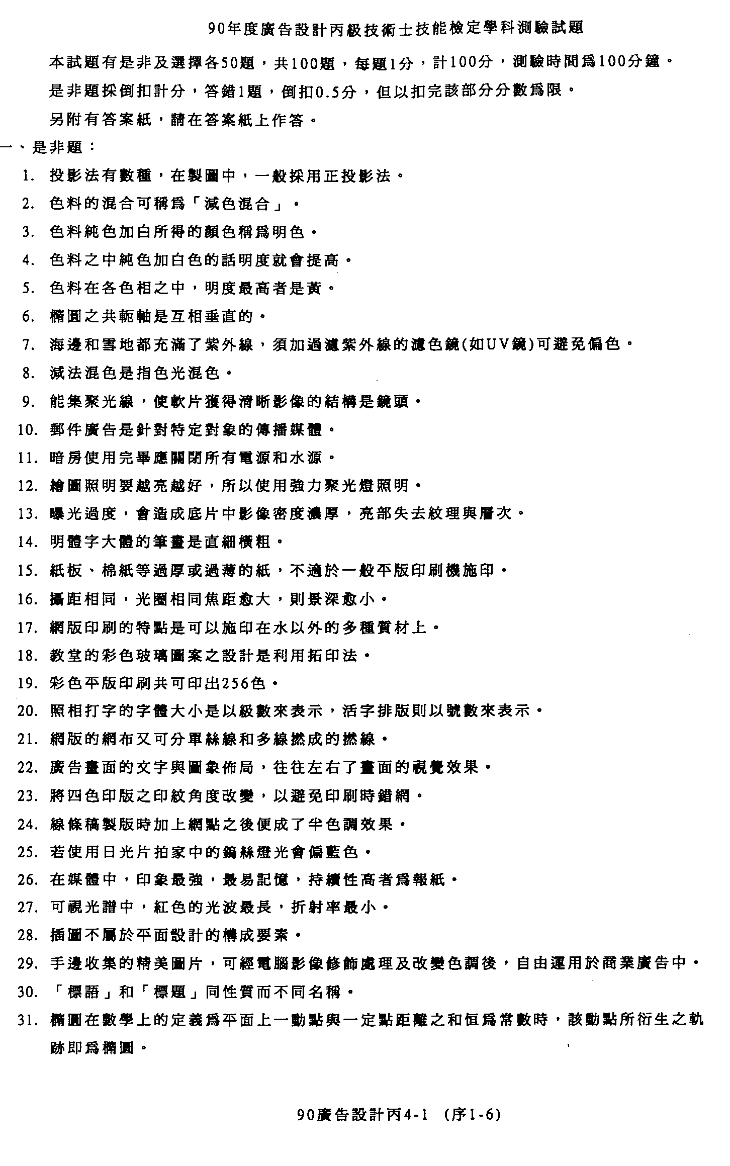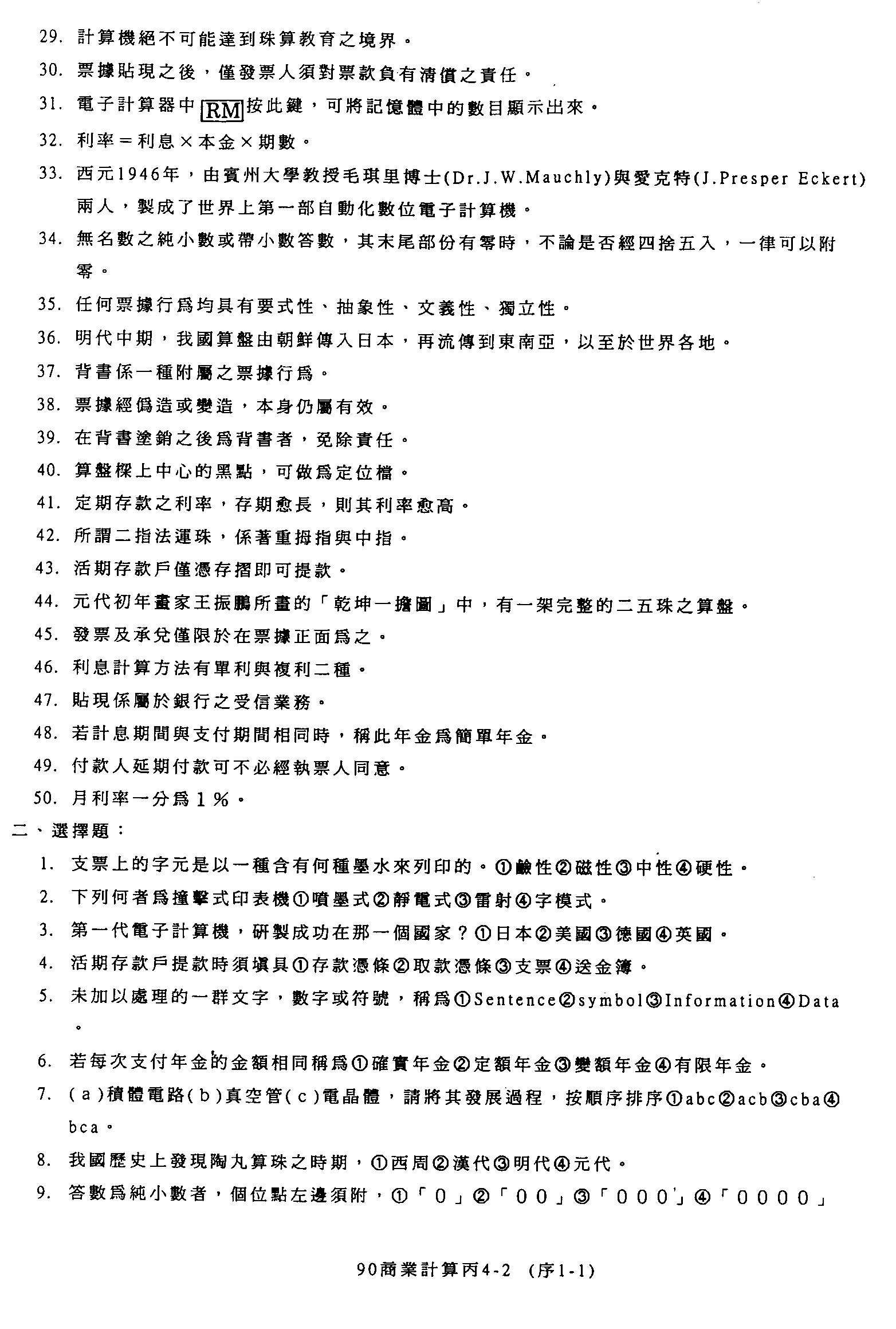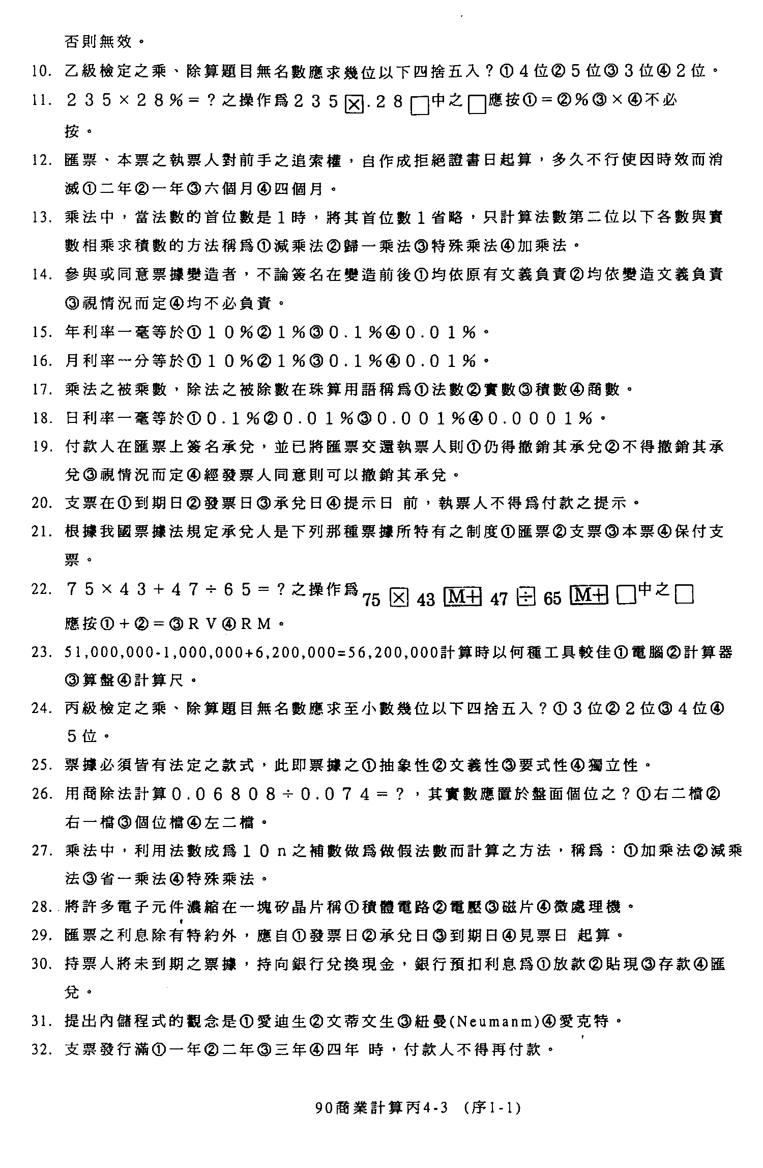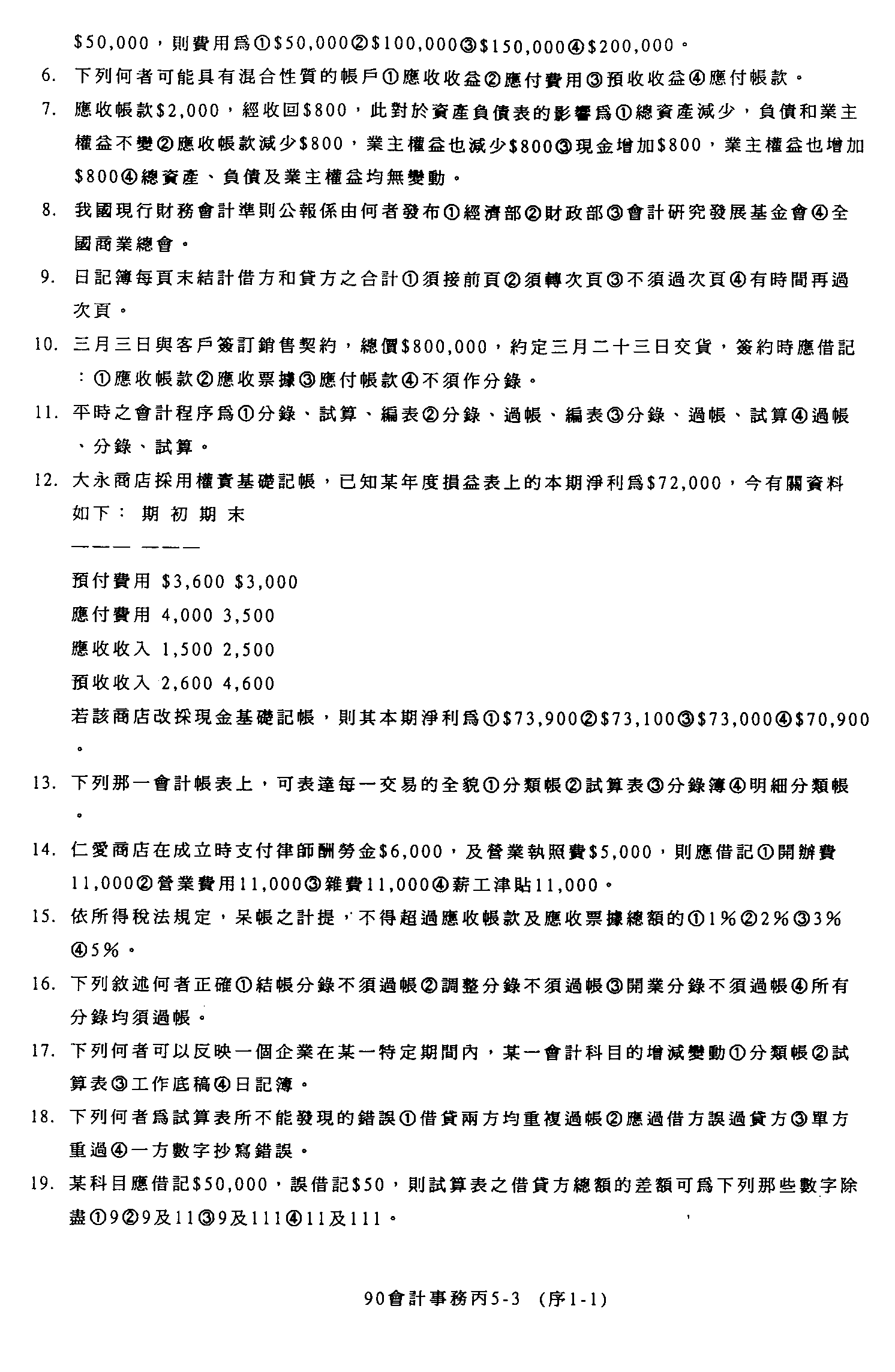 臺灣區九十年度技職學校商業類在校生丙級技術士專案技能檢定